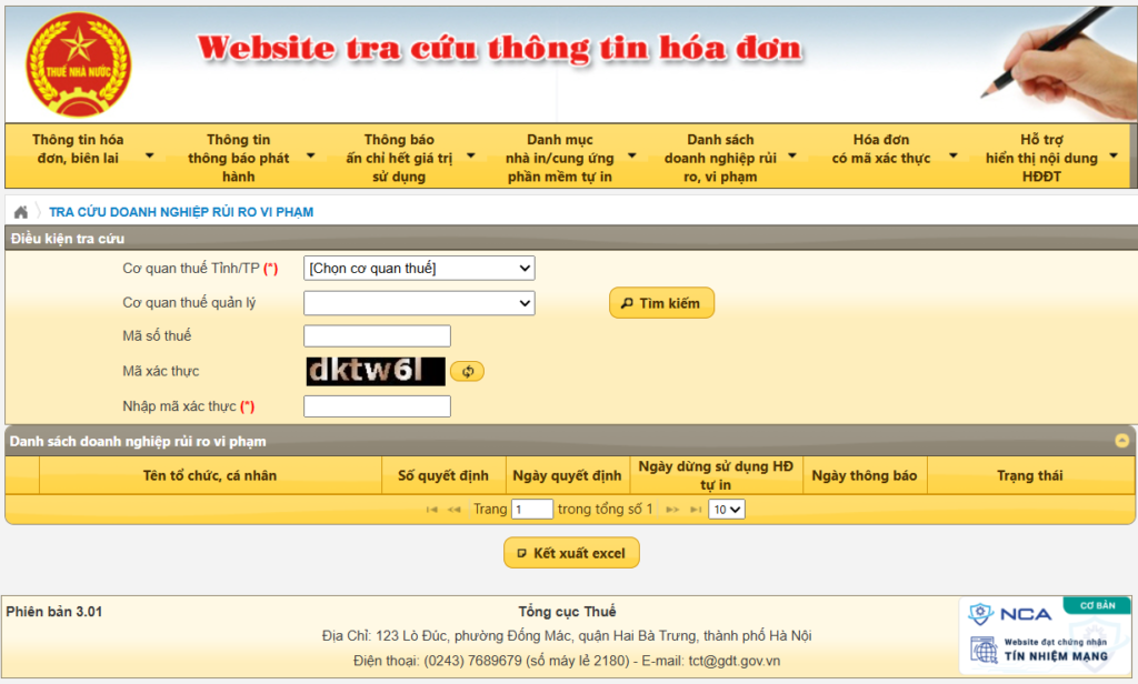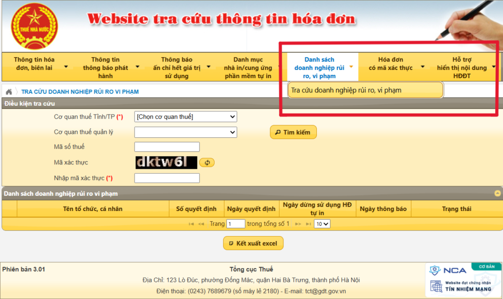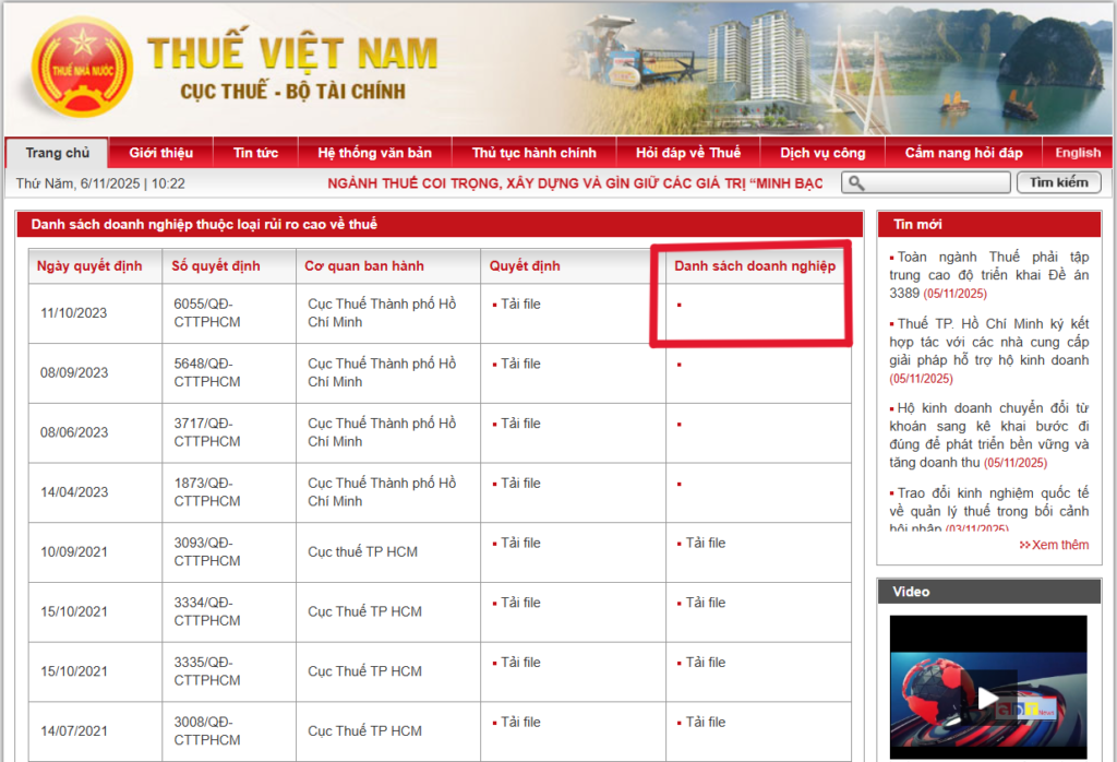 Hướng dẫn tra cứu doanh nghiệp thuộc loại rủi ro cao về thuế